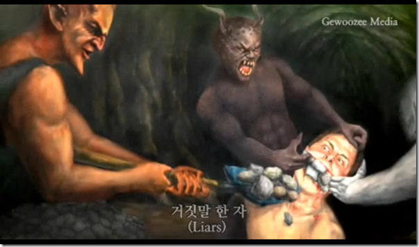clip_image002Lukisan-lukisan tentang  neraka ini saya ambil dari video di http://www.youtube.com/watch?v=dWXkBBIaiVc . Bagi teman-teman sekalian yang ingin mengetahui tentang kisah lengkap dari seniman Korea ini dapat langsung menontonnya secara online melalui link tersebut.